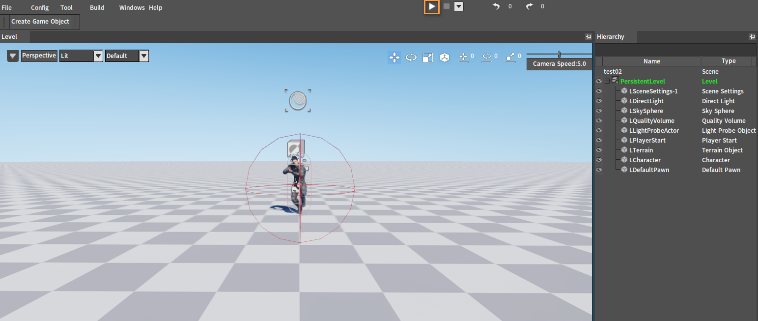 在组件编辑器中,依次点击工具栏创建游戏对象(Create Game Object) -> 角色(Character)。
