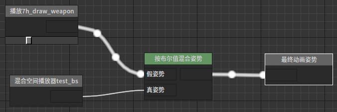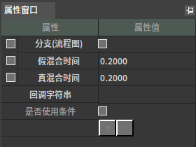 按布尔值混和姿势节点该节点根据布尔型参数控制输出在两个输入间切换。 节点使用 在动画图上右键打开上下文菜单,展开“Blends”分类并从中选取“按布尔值混和姿势”。 J:Developmentlexilexi_animation_editor_docspictures资产及工具atseq_player_context_menu_blending_boolblend.jpg 便能将其加入图中: 然后可以为节点配置合适的输入/输出。例如: 属性设置 选中节点后,我们可以在属性窗口看到节点的各种属性: 假混和时间 略 真混和时间 略 回调字符串 用于指定回调函数 是否使用条件 是否使用条件。关于条件的使用可参考关于“动作树参数使用”部分。