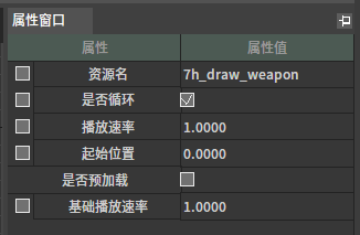 5属性窗口。与当前选中动画图节点对象相关的属性预览、编辑窗口。