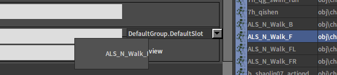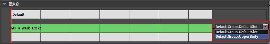 插槽节点该节点用于将动作树外部播放的动画姿势插入动作树供其他节点使用。 节点使用 在动画图上右键打开上下文菜单,展开“Montage”分类并从中选取插槽。 J:Developmentlexilexi_animation_editor_docspictures资产及工具atcontextmenu_slots.jpg 便能将其加入图中: Slot节点常与骨骼分层混合节点配合实现角色上下半身动作合成,如: 在动作树外部没有输入时插槽节点“UpperBody”引脚的输入即为输出。角色输出Locomotion动画。 当外部有输入时节点的输出将切换为外部输入。角色的上半身被输入动画替换。 属性设置 选中节点后,我们可以在属性窗口看到节点的属性: 组 插槽组 插槽 插槽名