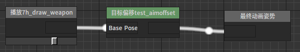 目标偏移播放器节点Anim Tree中的目标偏移播放器节点可以对AimOffsetBlendSpace 资产进行采样并输出特定时间点上的姿势。 节点使用 放置流程与混和空间播放器节点相同。但需要为“Base Pose”引脚指定输入。 属性编辑 Additive Alpha:叠加混和度 sample_x:在混合空间中采样的X坐标 sample_y:在混合空间中采样的Y坐标