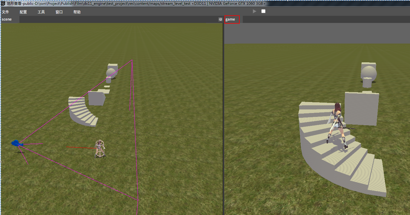 支持同时显示编辑器视图和游戏视图,两个视图互不影响。