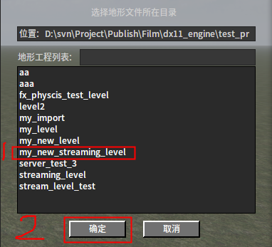3.在新打开的对话框中输入新的流式关卡路径和名称。然后点击确定按钮。