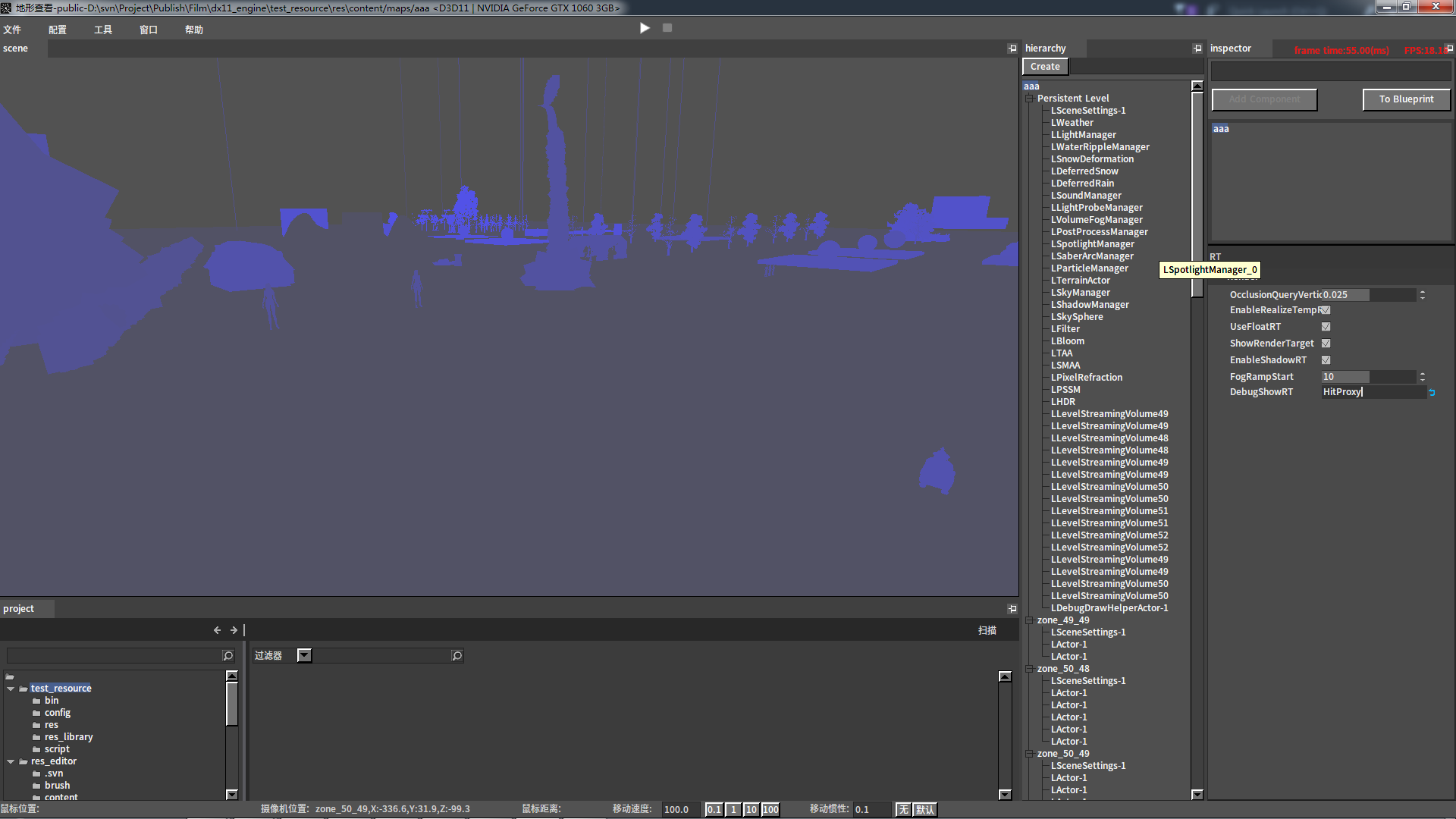 1.双击选中场景大纲视图的永久性关卡