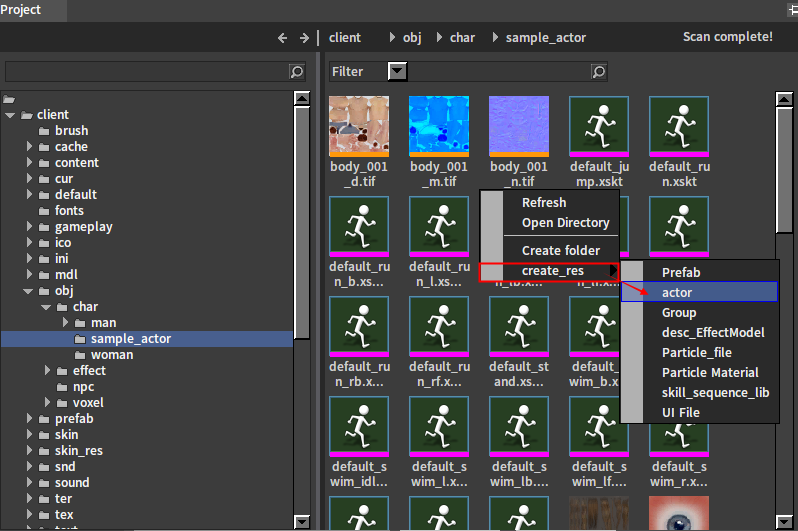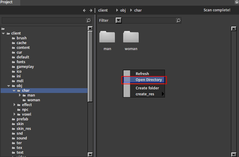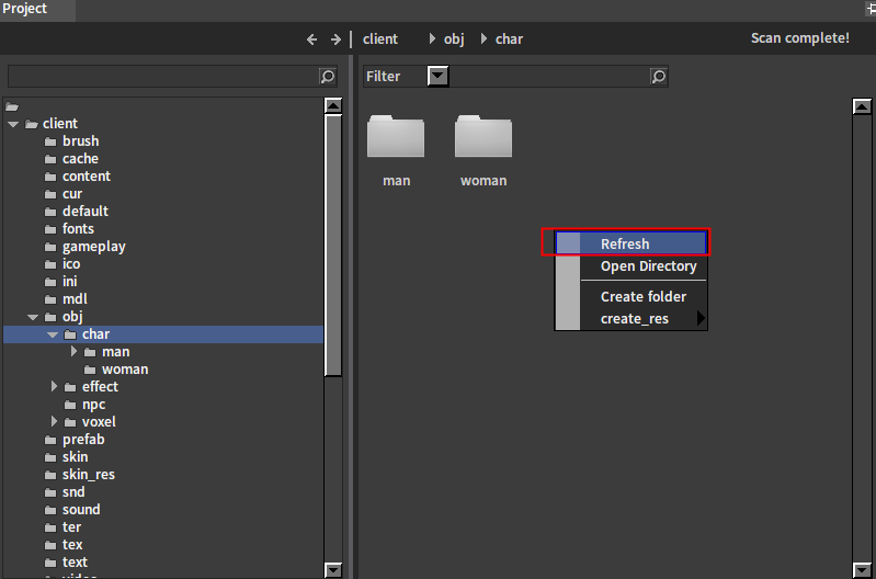 - 点击右键菜单中的刷新目录,即可看到复制进去的资源文件夹