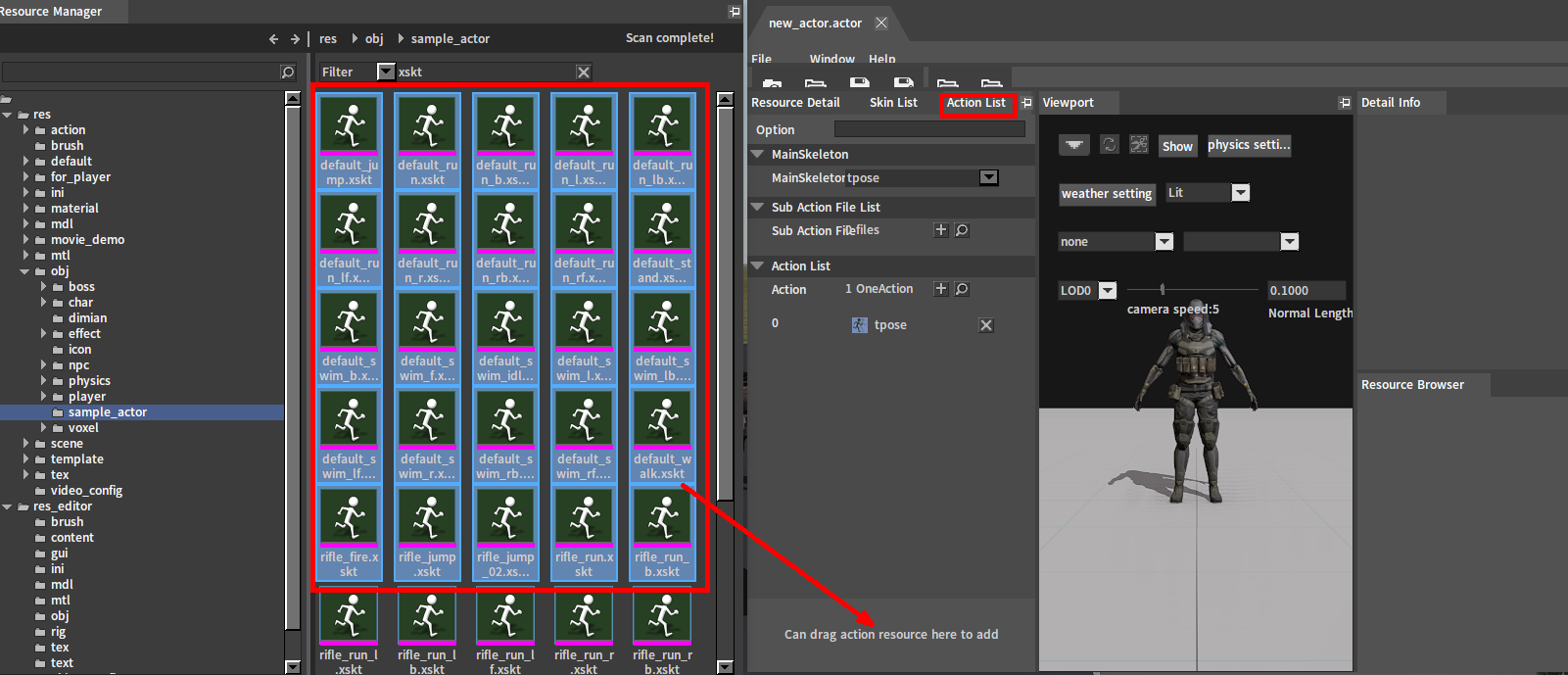 - 点击Skin_list,将蒙皮模型xmod文件拖入